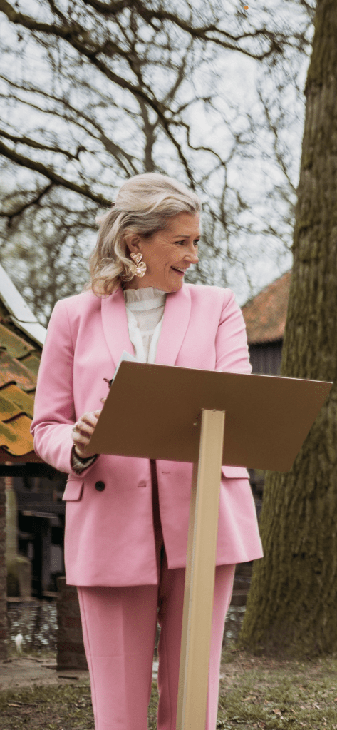 Ik ben Petra van Werkhoven en woonachtig in het mooie Twente. Hier woon ik met mijn twee kinderen en hond Max. In het dagelijks leven ben ik werkzaam als makelaar. Al sinds ik mij kan herinneren ben ik gepassioneerd over trouwen. Vooral de verbinding maken tussen 2 mensen vind ik nog steeds bijzonder. Als makelaar ben ik ook altijd bezig met verbinden, het bij elkaar brengen en het bezegelen in een koopakte. Mede door mijn achtergrond als “Hotello” blijft het bloed kruipen waar het niet gaan kan. Na mijn 50e heb ik voor mijzelf een bucketlist opgesteld met dingen die al jaren in mijn hoofd zitten. Mijzelf beloofd deze lijst af te werken. Met als startpunt “Zelfstandig trouwambtenaar/ceremonieel spreker” worden. Tijdens het voorlezen van de koopaktes maak ik er altijd een feestje van. Je koopt namelijk niet vaak een woning en trouwen doe je nog minder vaak. Zo kwam ook de vraag of ik wellicht openstond om mensen te trouwen en zo geschiedde. De cursus is met succes afgerond en ik kan aan de slag. De eerste bruiloften zijn gepland via mijn netwerk.